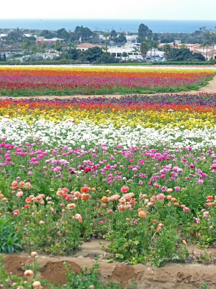 In the 1920s, Luther Gage settled in Oceanside and began growing Ranunculus seeds next to his friend’s vegetable farm. The friend, Frank Frazee, began growing freesia when his vegetable farm was destroyed by fire. He later added Ranunculus to expand his offerings. These 50 colorful acres are now called The Flower Fields at Carlsbad Ranch and attract a number of tourists. I call it “Rainbows of Ranunculus.”