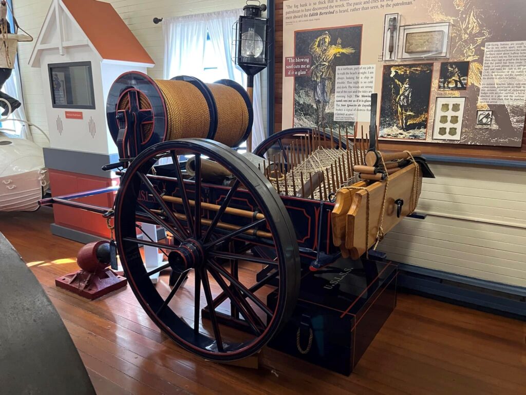 Figure 3This is one of the apparatus carts that the rescuers had to pull to the site of the shipwreck. It has wide wheels to trek over the sand. Fully loaded, it was over 1,000 pounds and it was grueling work to move it over the sand to the shipwreck site.